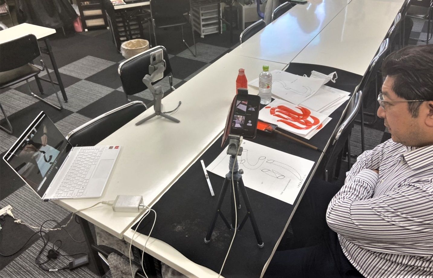画面の向こう側では、カメラの角度を変えてもらい、