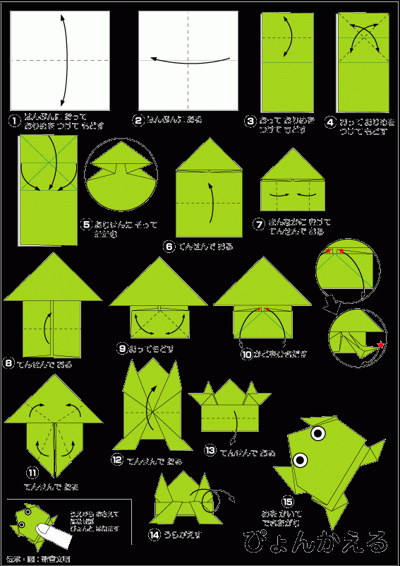 ぴょんぴょんカエルの折り方が、