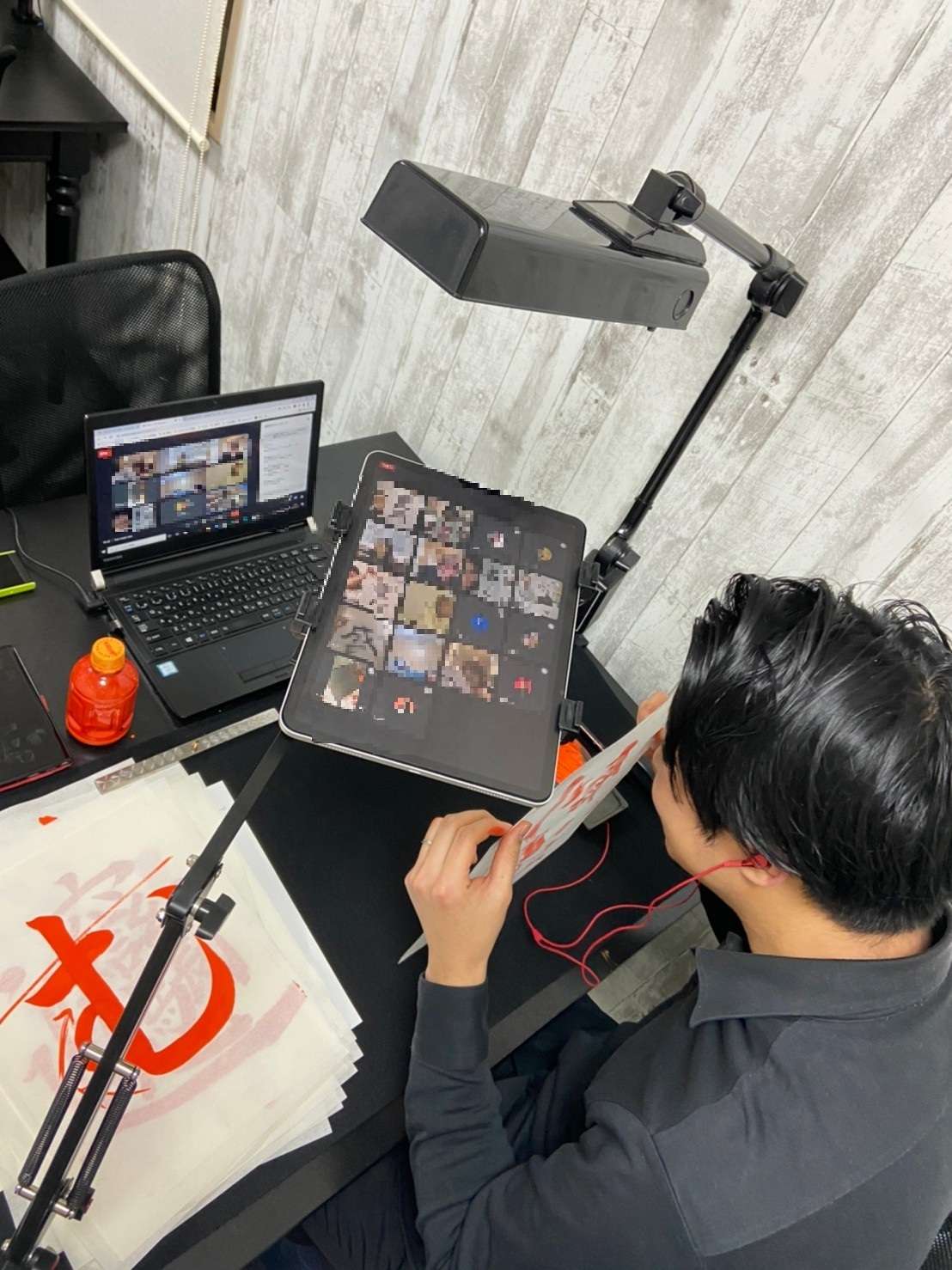 上平泰雅によるGoogle Meetを利用したオンライン書道イベントを実施☆2022年の目標を書く!!