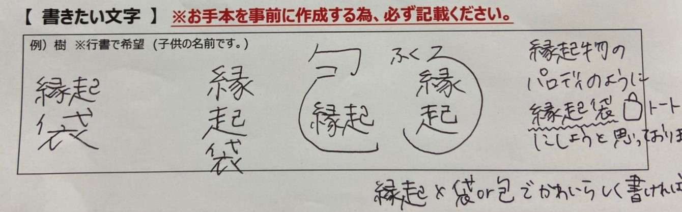 縁起がふくろに包まれておりまして笑