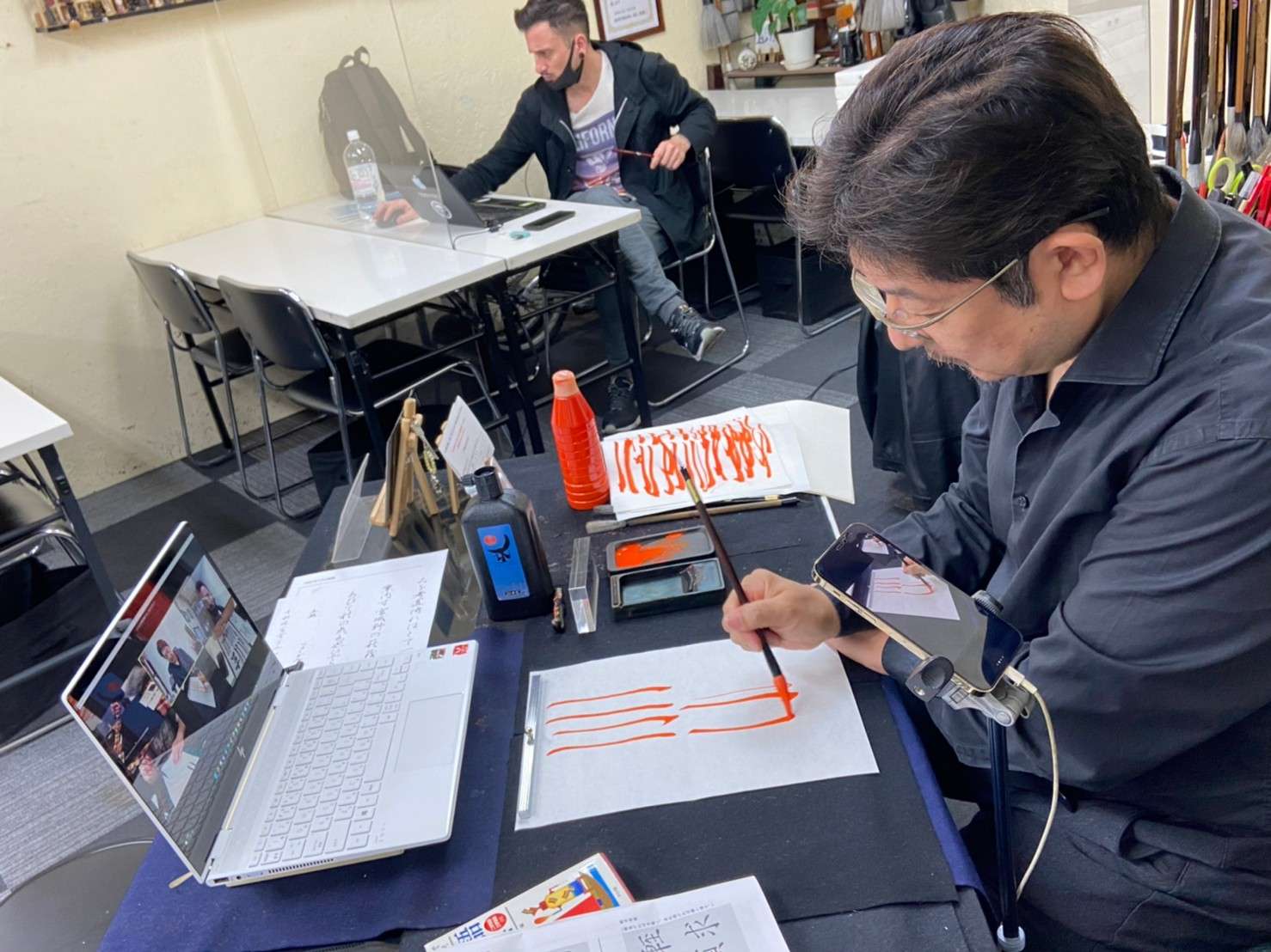 【Japanese Calligraphy☆ZOOM Lesson】外国人の生徒と梅径先生×ライアンのオンラインコース♪