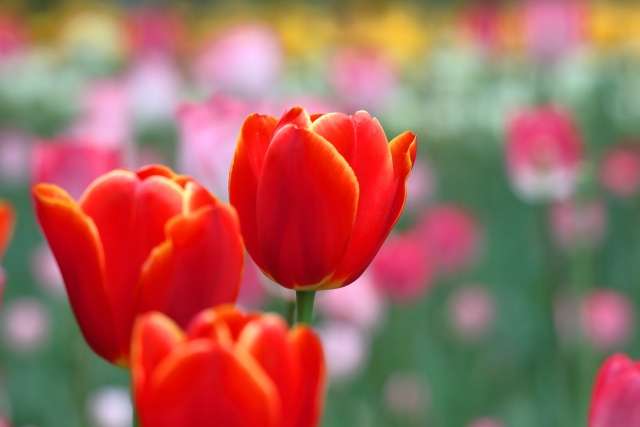 チューリップにちょうちょがひらひら~