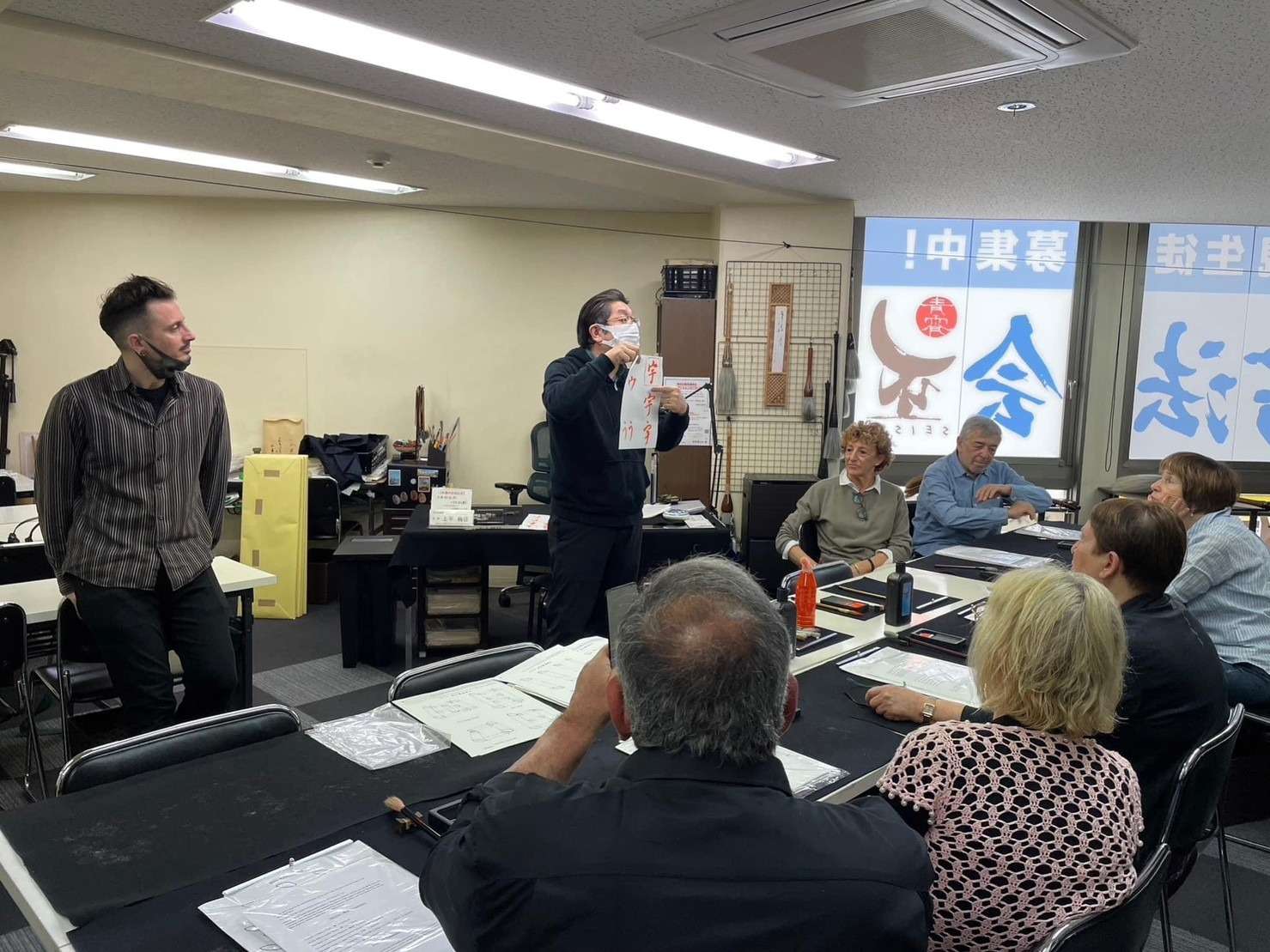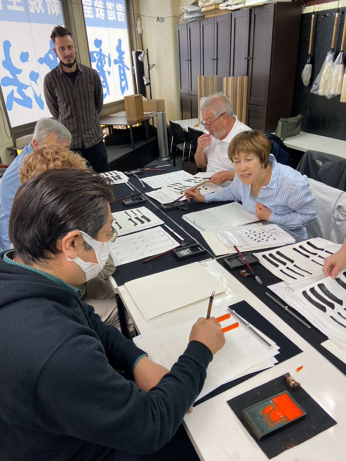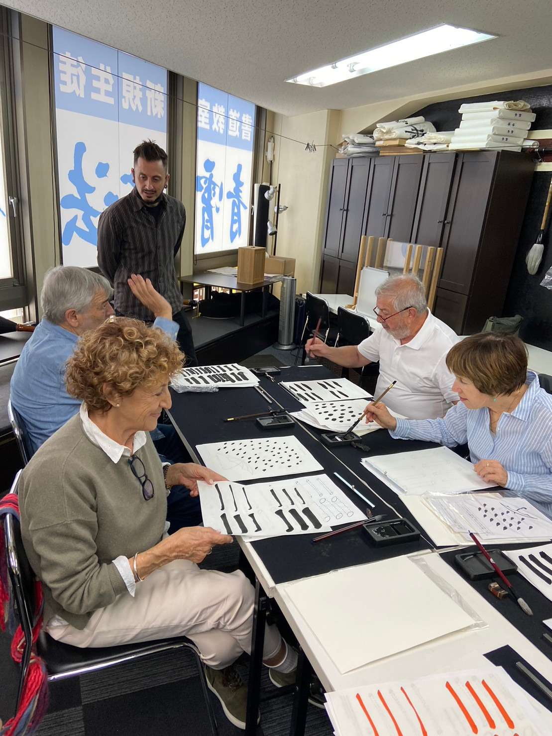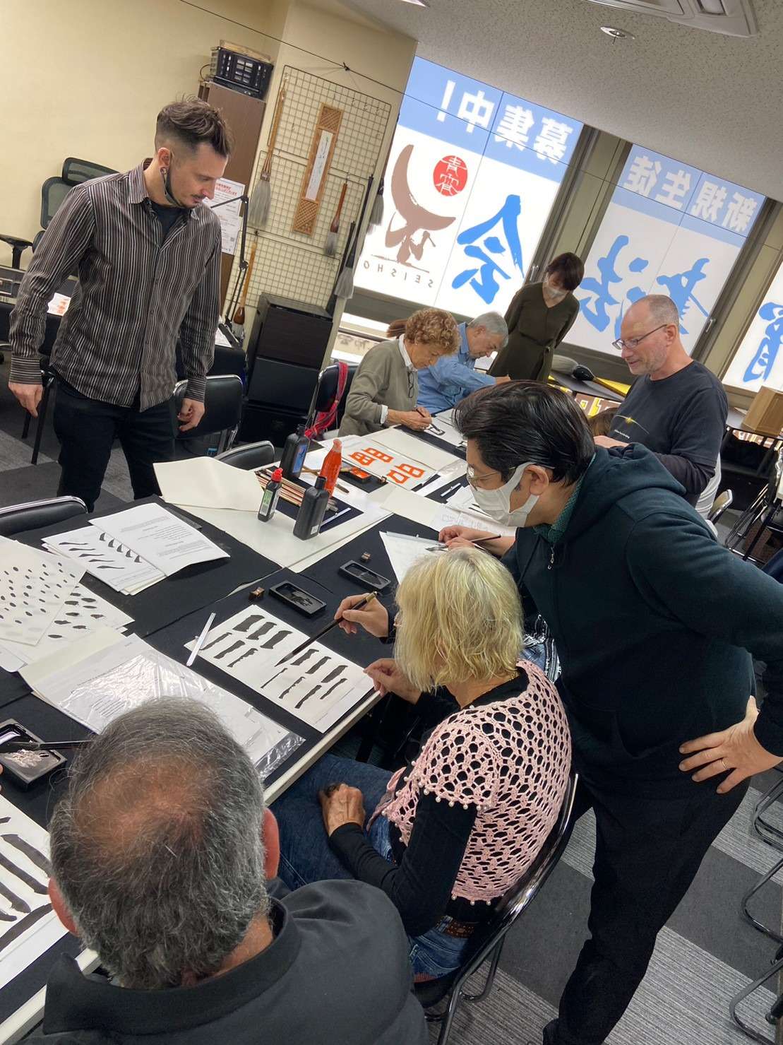 日本へようこそ★観光に来た海外旅行者7名様で60分の書道体験コースを受講いただきました!!