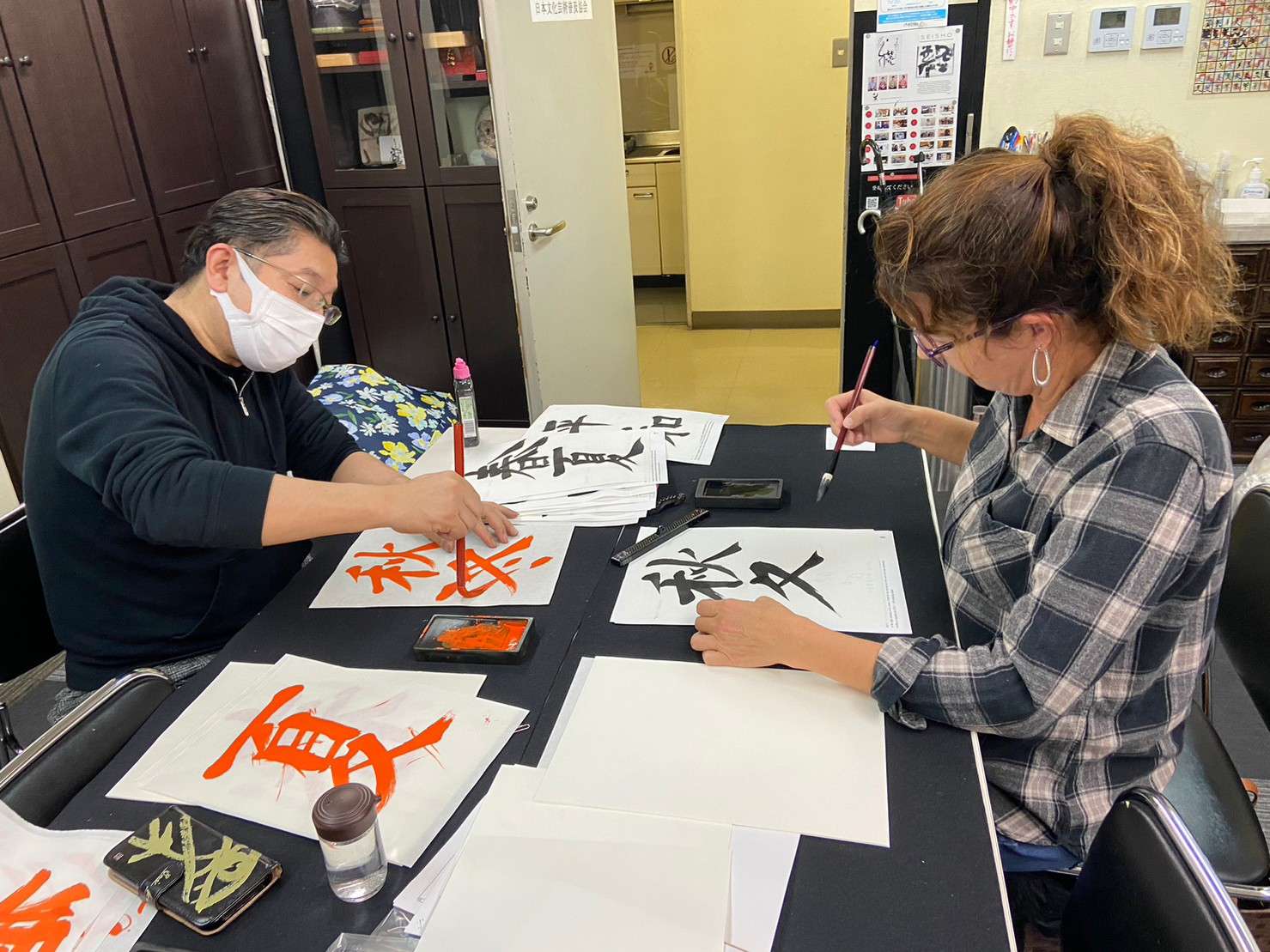 急遽、書道体験60分コース2名様をご案内♪