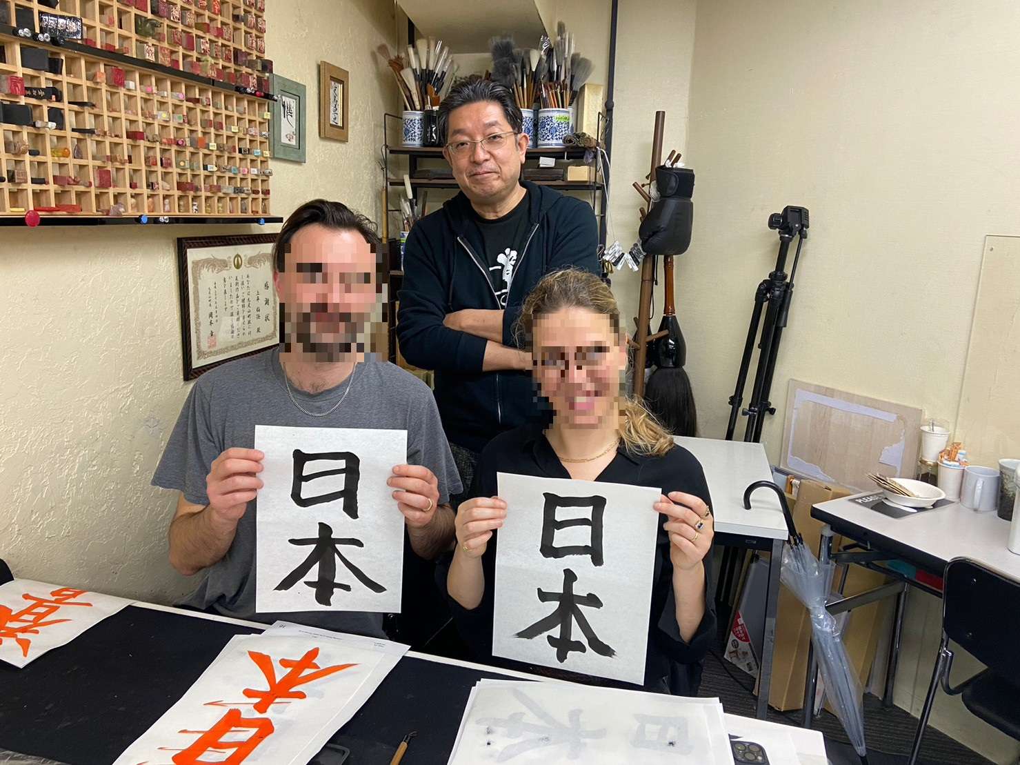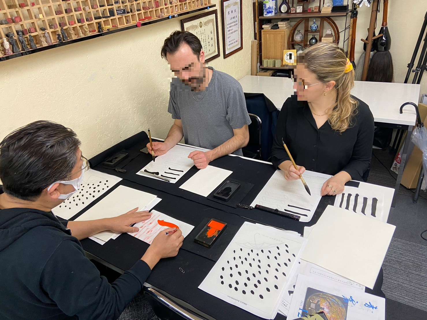 ようこそ日本へ★体験コースに3名の外国人観光客の方が参加してくださいました(#^^#)書道のことなら「青霄書法会」