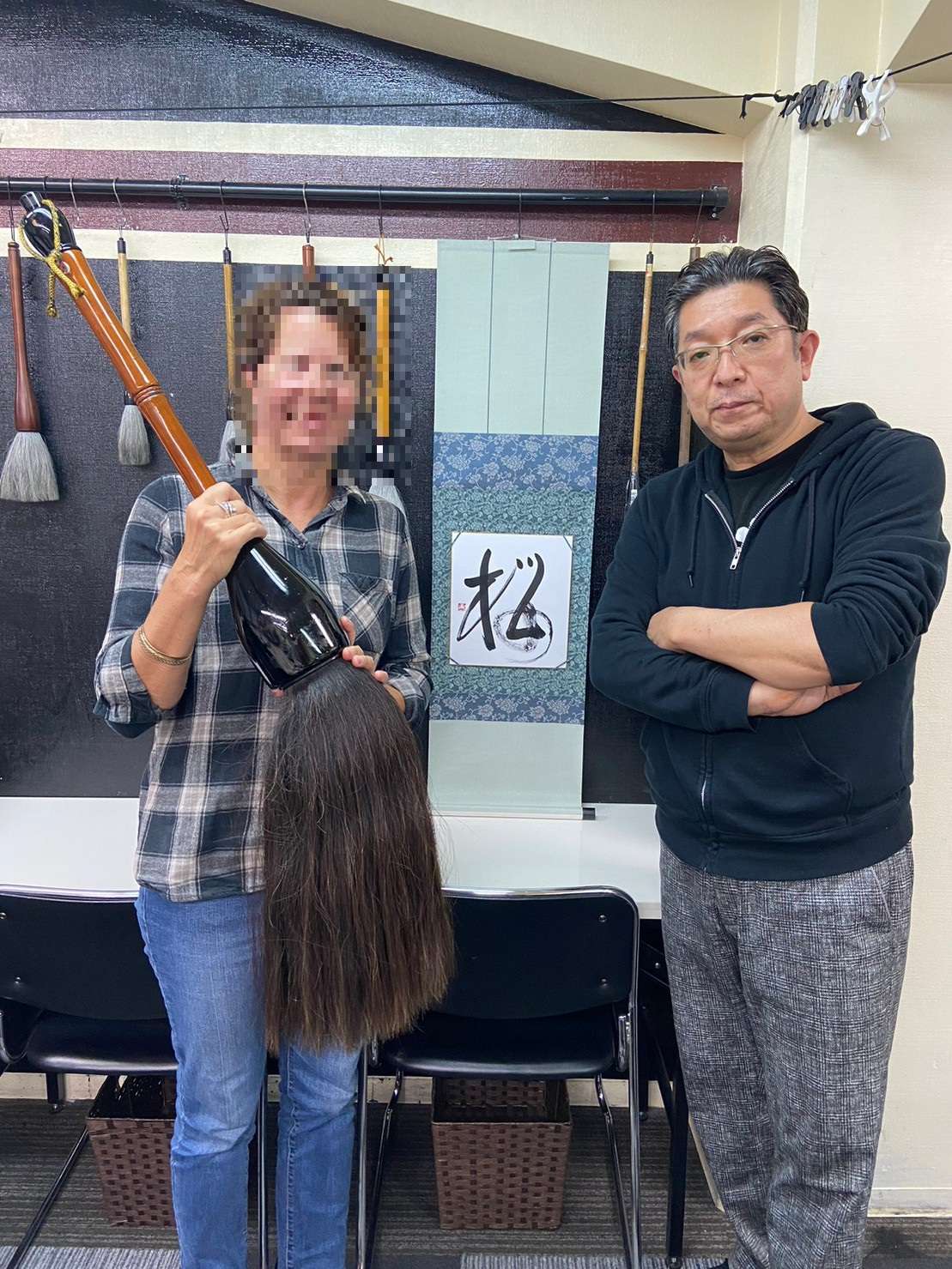 彼女は書道体験90分コースでしたので、