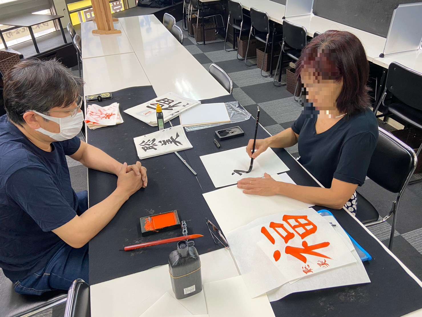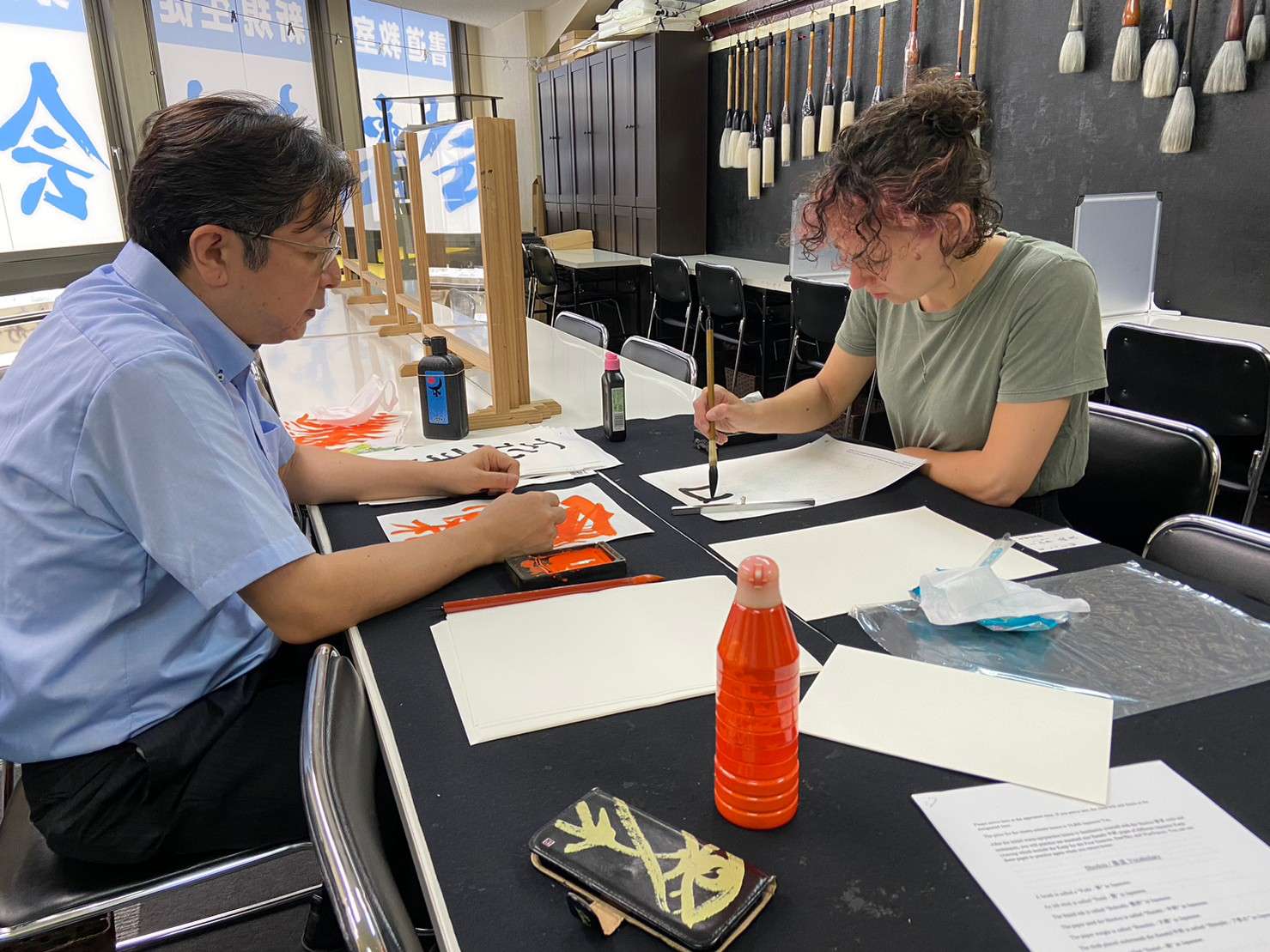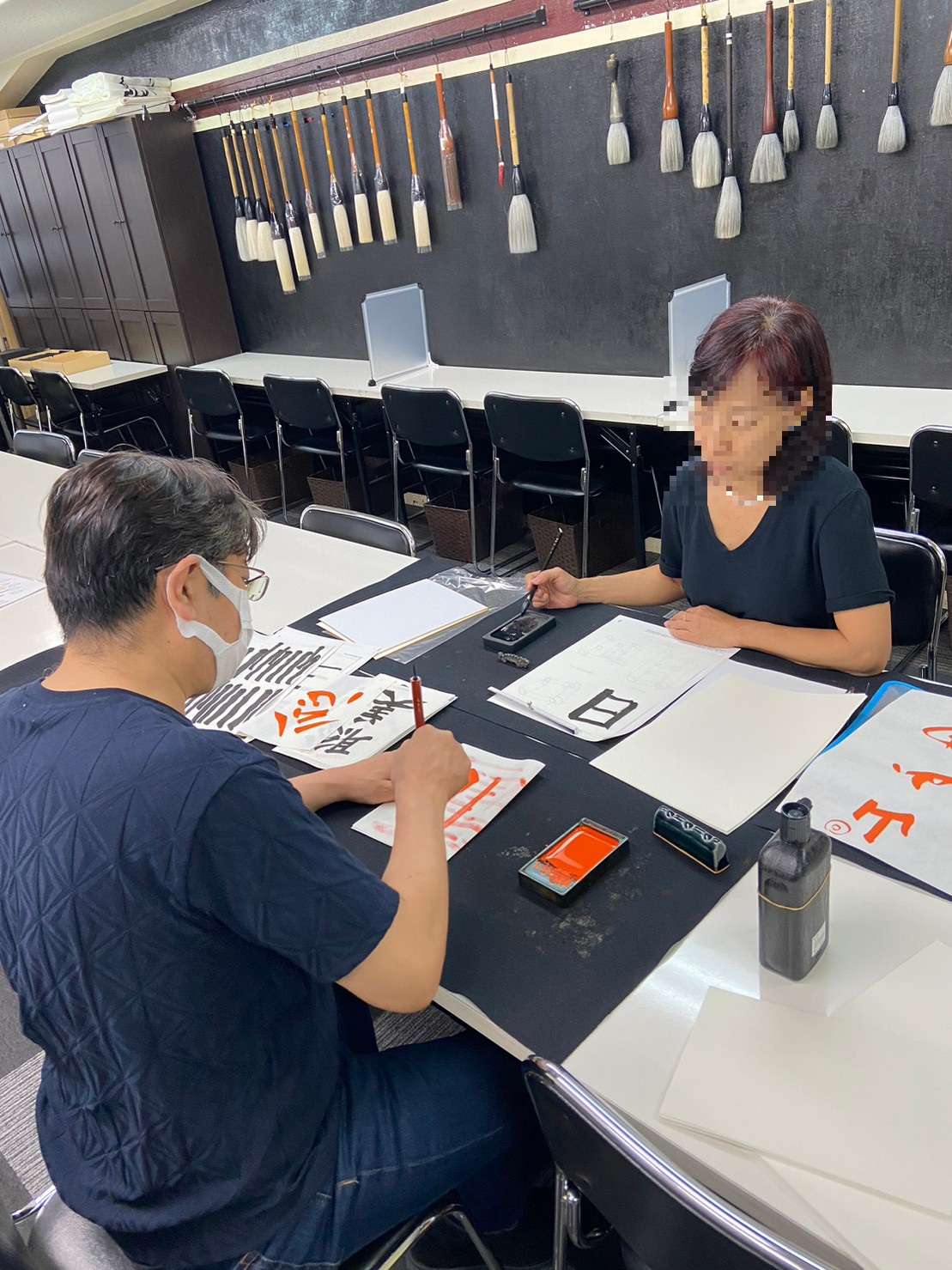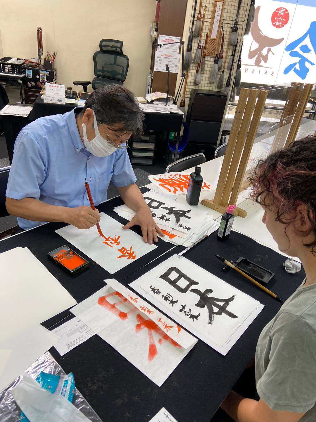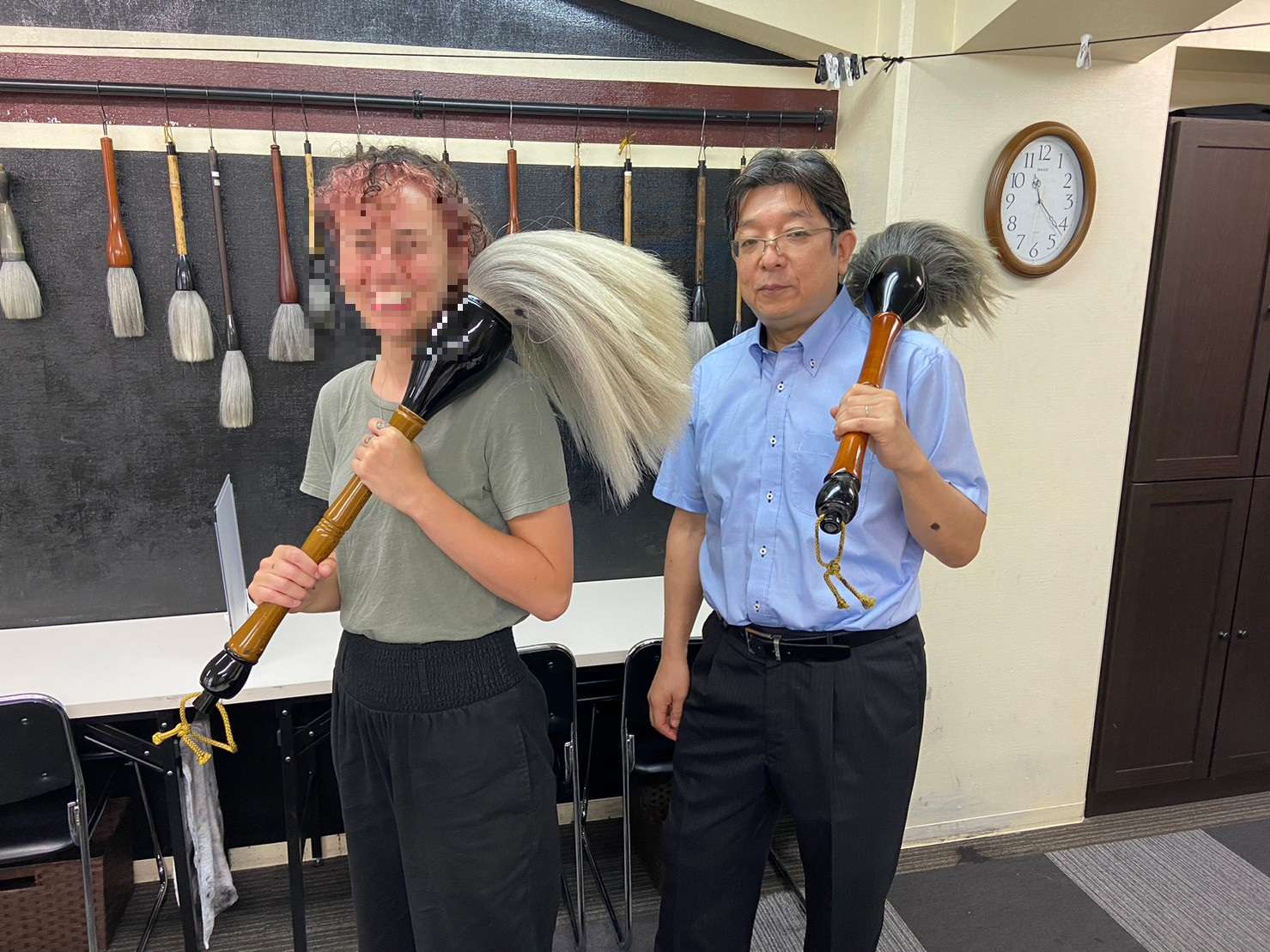 外国人の方が書道にチャレンジ♪嬉しいことに1週間に2名の参加がありました!!難波で書道体験なら「青霄書法会」