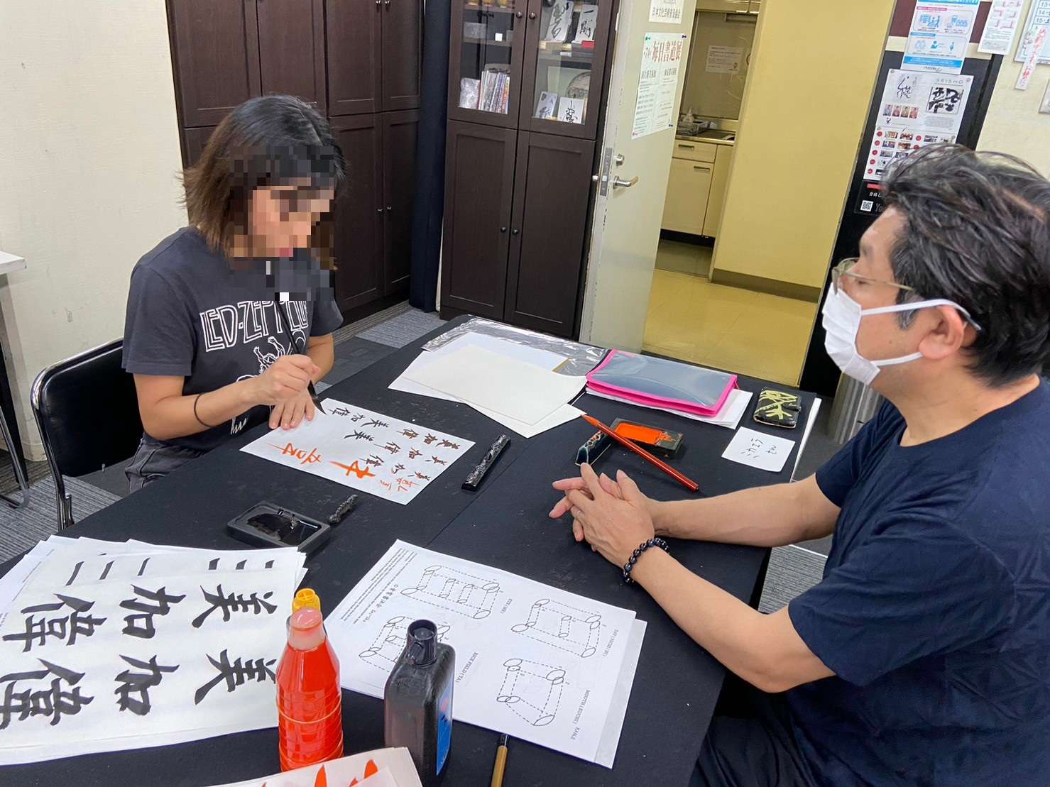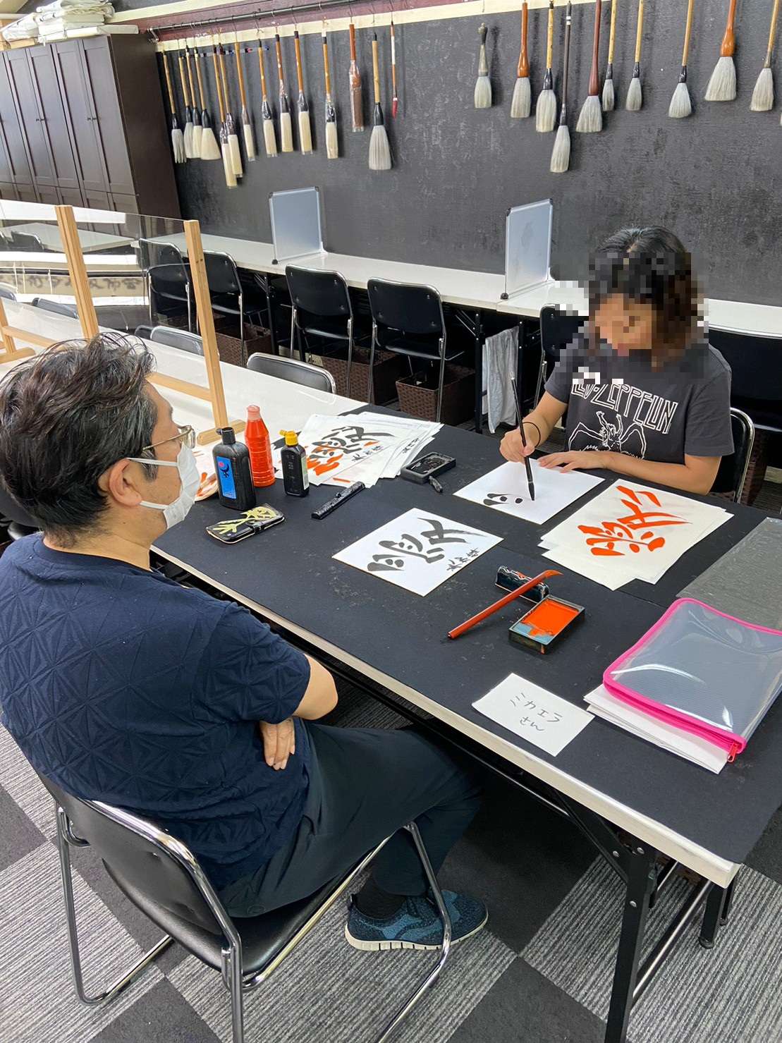 以前に外国人90分コースを受講された方の娘さんにお越しいただきました♪難波で書道の体験レッスンなら「青霄書法会」
