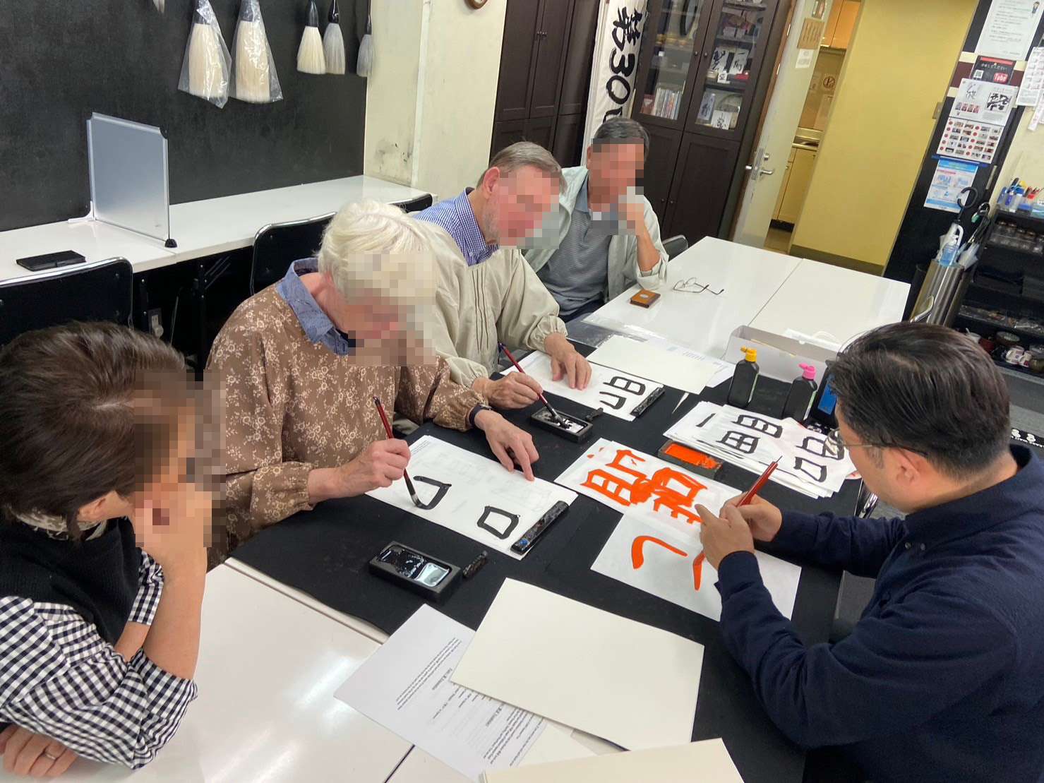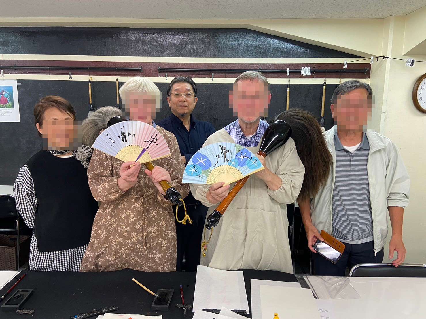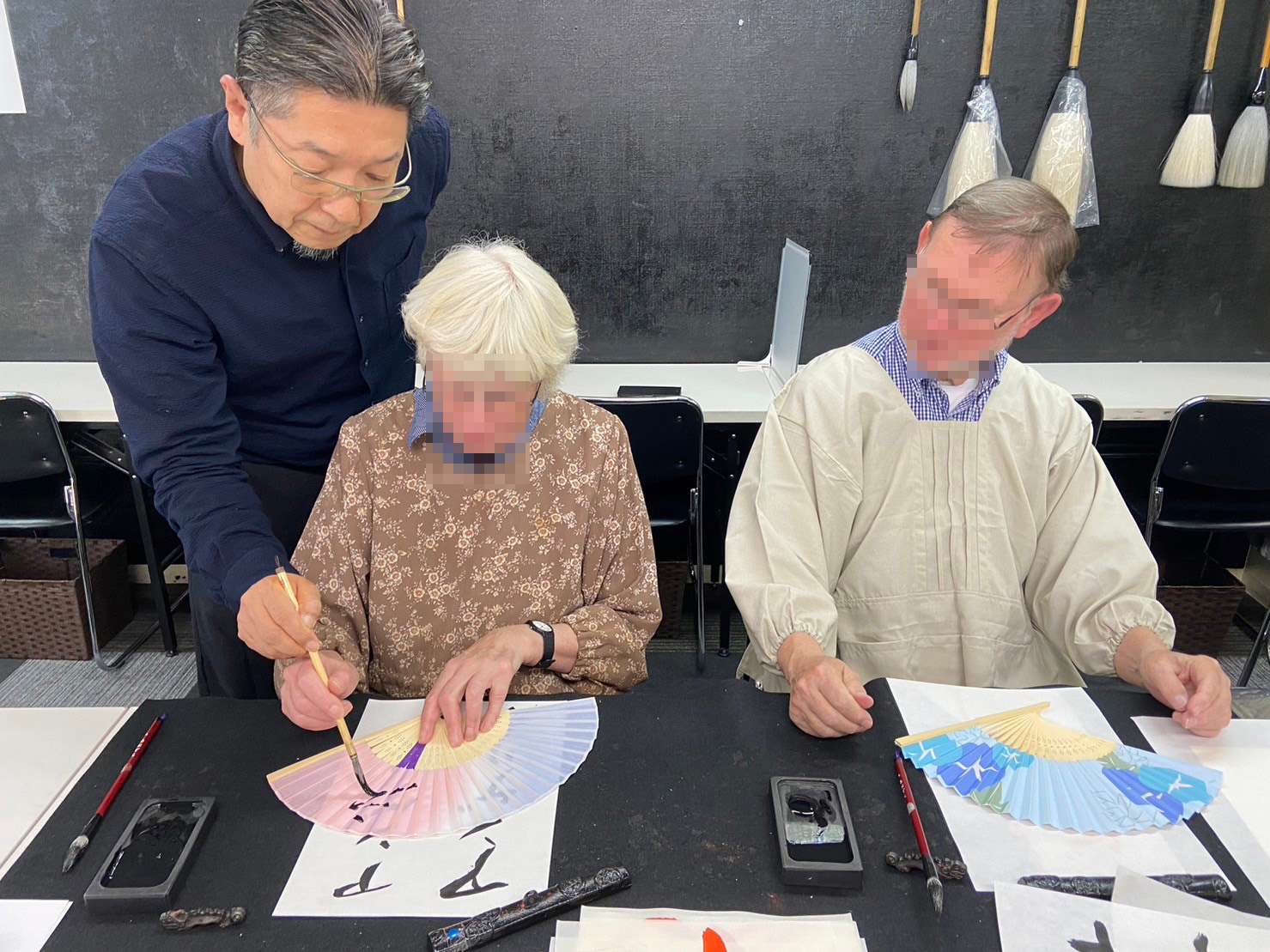 外国人コース★60分扇子作りコースにご参加いただきました♪ドイツからようこそ!!初めて書道に挑戦★青霄書法会