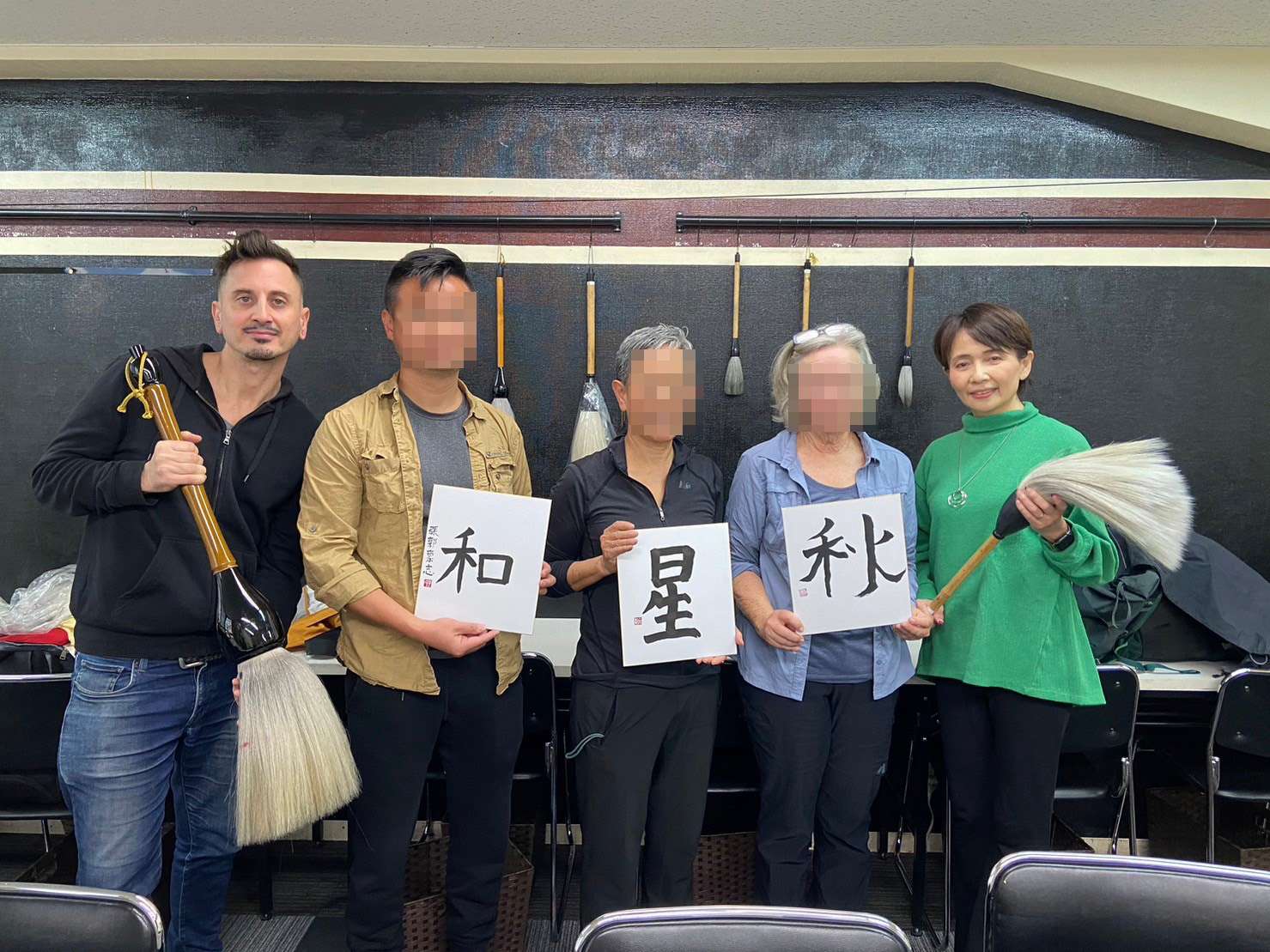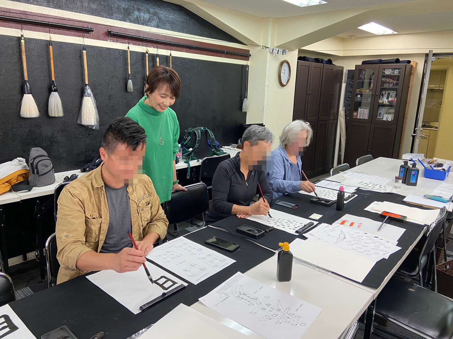 大阪へようこそ!!大筆&篆刻レッスン★あっという間の2時間でした(#^^#)大阪で書道なら「青霄書法会」