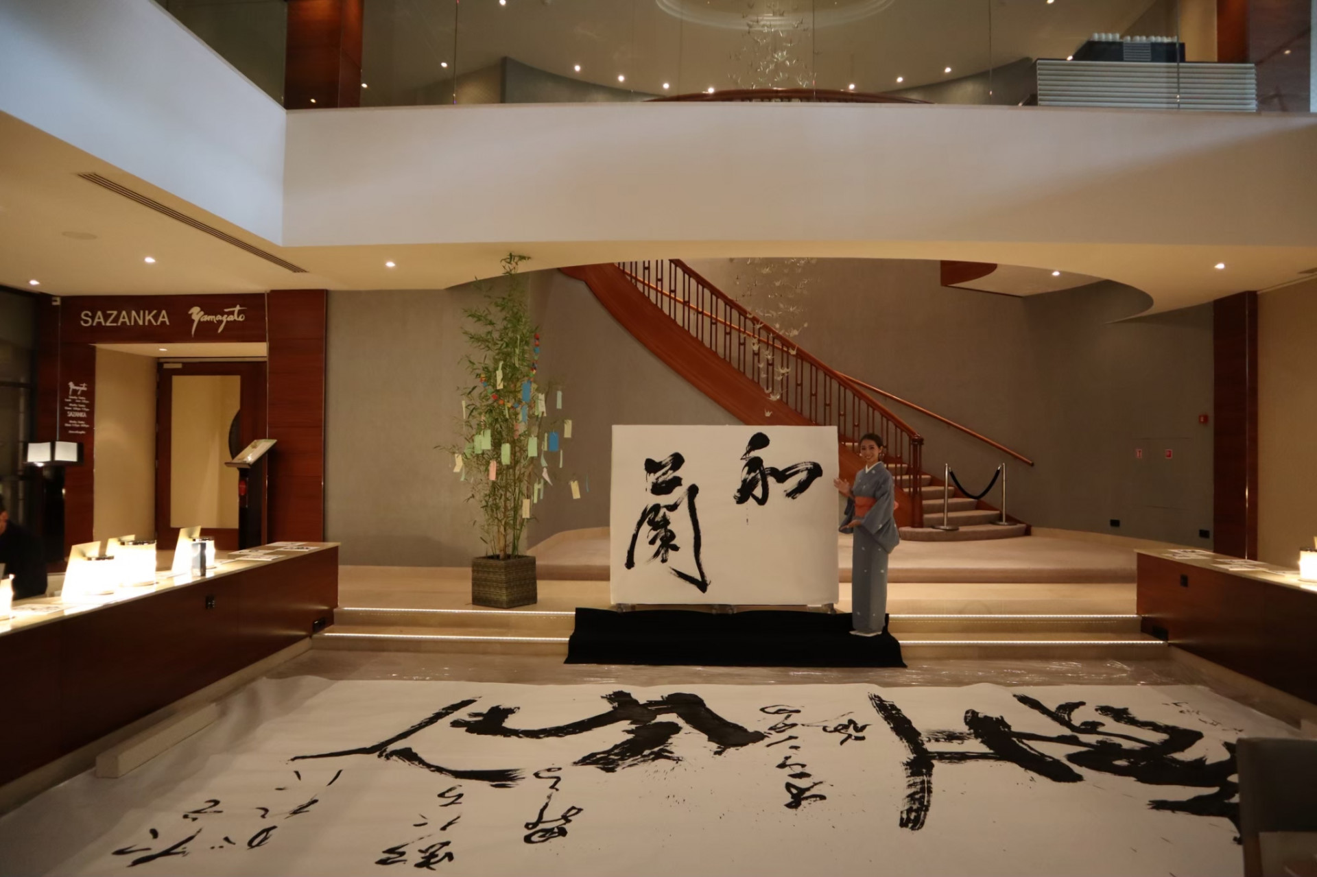 アメリカでは、和太鼓奏者とのコラボレーションによるスタンディング書道を行うなど、活躍の場を広げている。